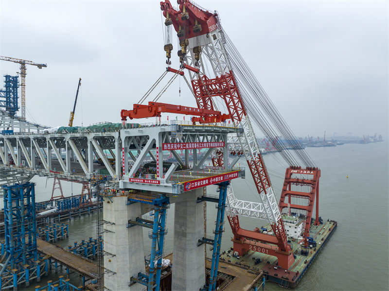 20日3月,的钢桁梁慢慢被吊起跟着近1400吨重,3号墩墩顶稳固安插正在,州侧首节段钢桁梁胜利架设常泰长江大桥主航道桥泰。前此,1日落成了首节段吊装主航道桥常州侧于2月。此至,桁梁架设通盘打开大桥主航道桥钢。