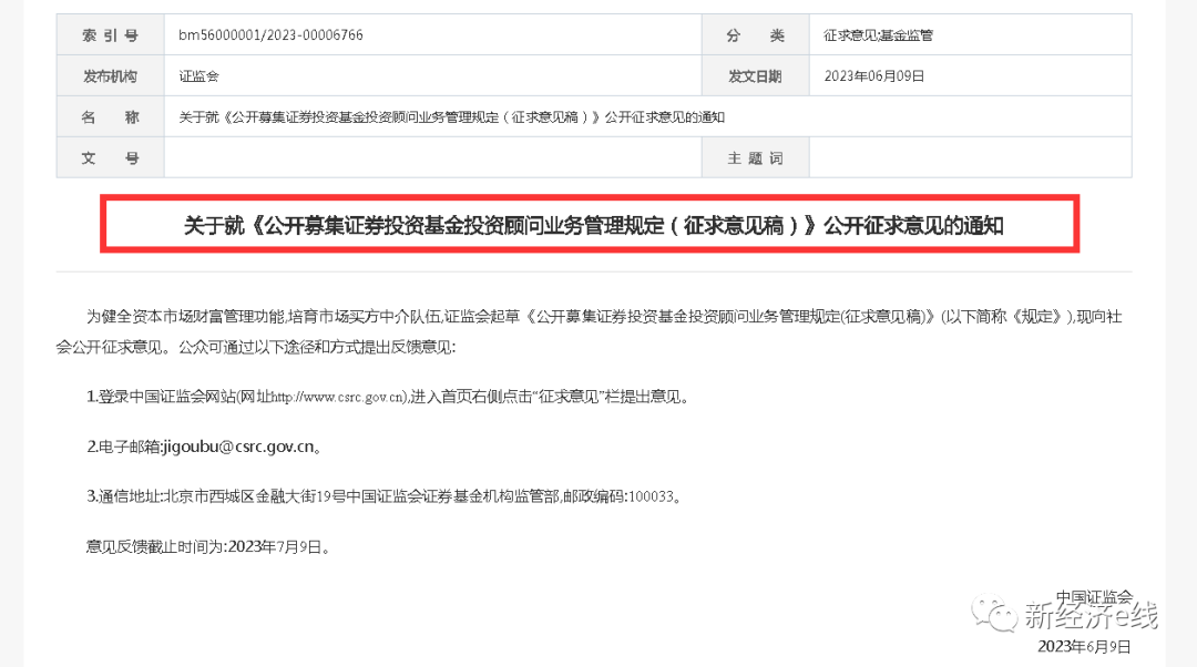 9日6月,定(征采主张稿)》(以下简称《章程》)公然征采主张证监会就《公然召募证券投资基金投资照应生意经管规。:2023年7月9日主张反应截止期间为。