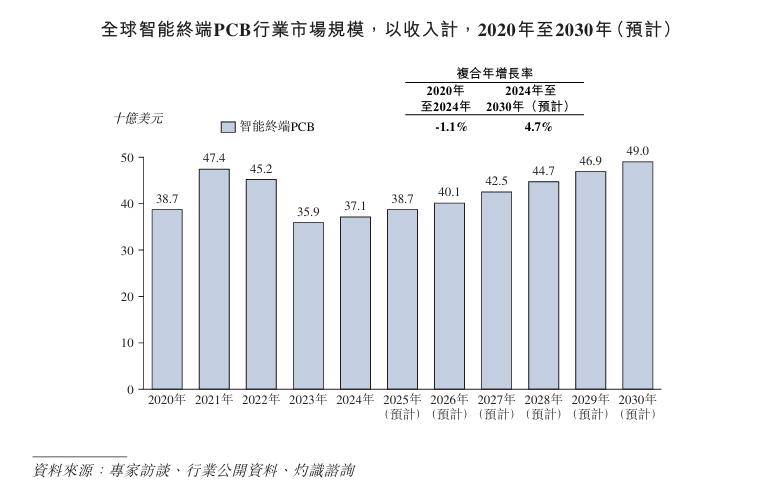 收入计以出售,估计于2030年到达490亿美元环球智能终端PCB行业的市集范畴,的复合年延长率为4.7%2024年至2030年。