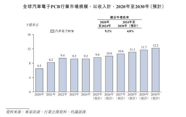 收入计以出售,年的65亿美元延长至2024年的92亿美元环球汽车电子PCB行业的市集范畴由2020,长率为 9.2%于此光阴复合年增。