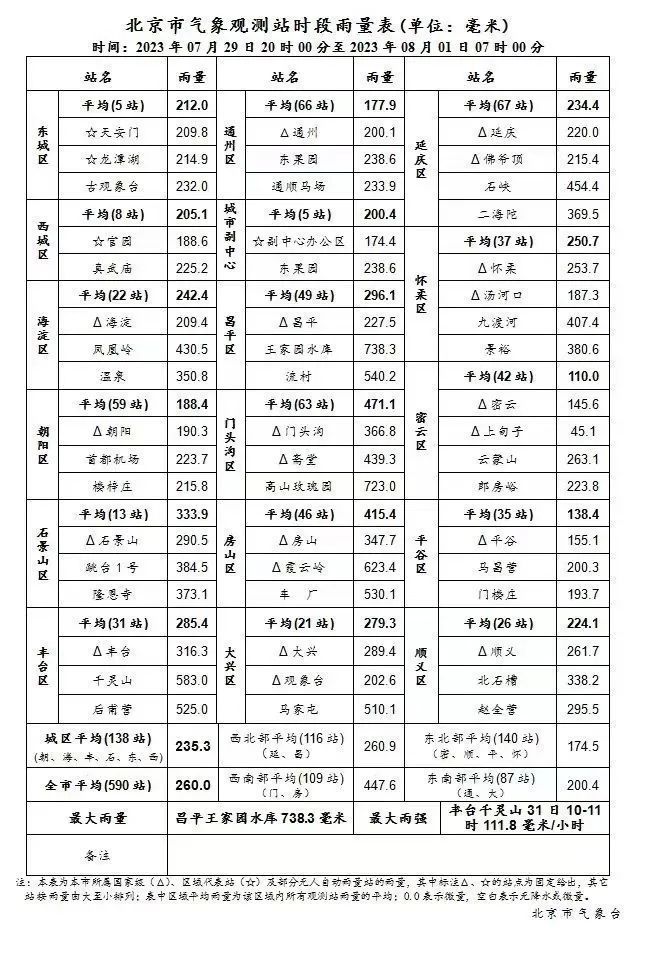 景象台动静据北京市,至8月1日7时29日20时,雨量260.0毫米北京区域全市均匀降,35.3毫米城区均匀2,15.4毫米房山区均匀4,471.1毫米门头沟区均匀;现正在丰台千灵山最巨细时雨强出,111.8毫米/幼时31日10-11时。