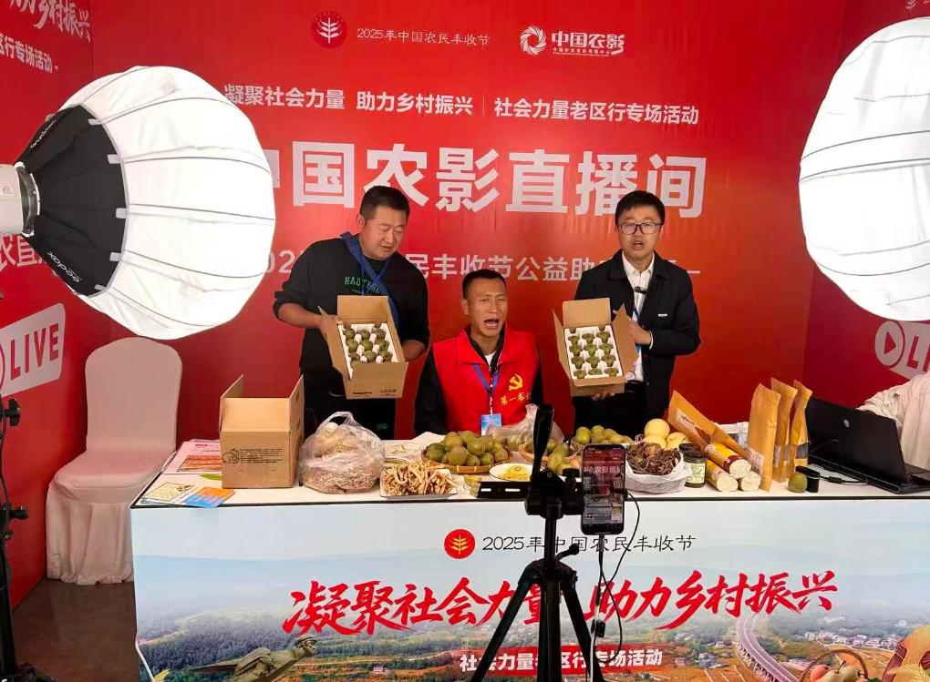人们“家,猕猴桃来了咱们的红心,丰收节这天果香味甜”,记谢艾军同其它两位村支书一同聚正在镜头前四川省广元市苍溪县河地镇兴华村党总支书,吆喝着高声,季节生果红心猕猴桃向网友推介苍溪县的。