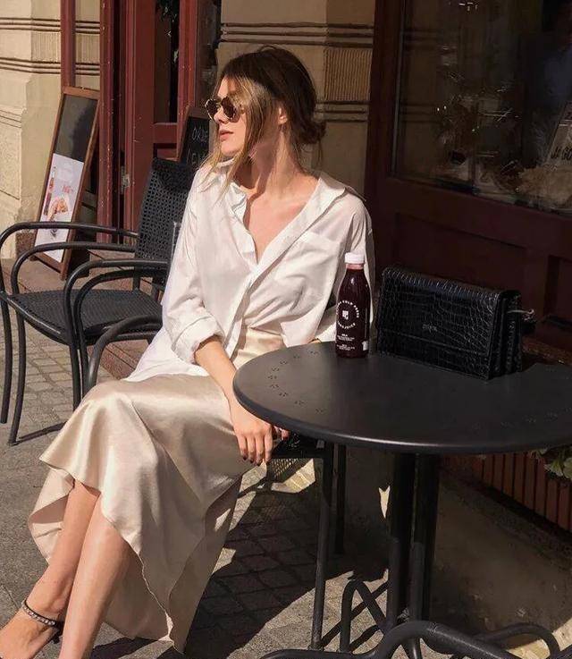 要认真的要做到绘声绘色也许一份好的气质是不需,中矩中规,就能表达出一份新颖美感一个疏忽慵懒的发型可能。单品的高级来陪衬集体的搭配只需求,多装饰无需再。最好的时尚魅力丝质感的单品是,裙搭配一款简约的白色衬衫一件真丝或丝绸面料的长,午后慵懒的女人气质不经意间营造了一份!