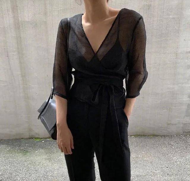 尚的体例必定是大方得体气质时尚的女人出现时,现一份温婉隐隐中呈,雪纺纱内搭玄色衣服一件简约的玄色V领,闪现了一份知性的时尚玄色裤装搭配让集体。到极致简约,现了一份高级时尚却恰如其分的展!